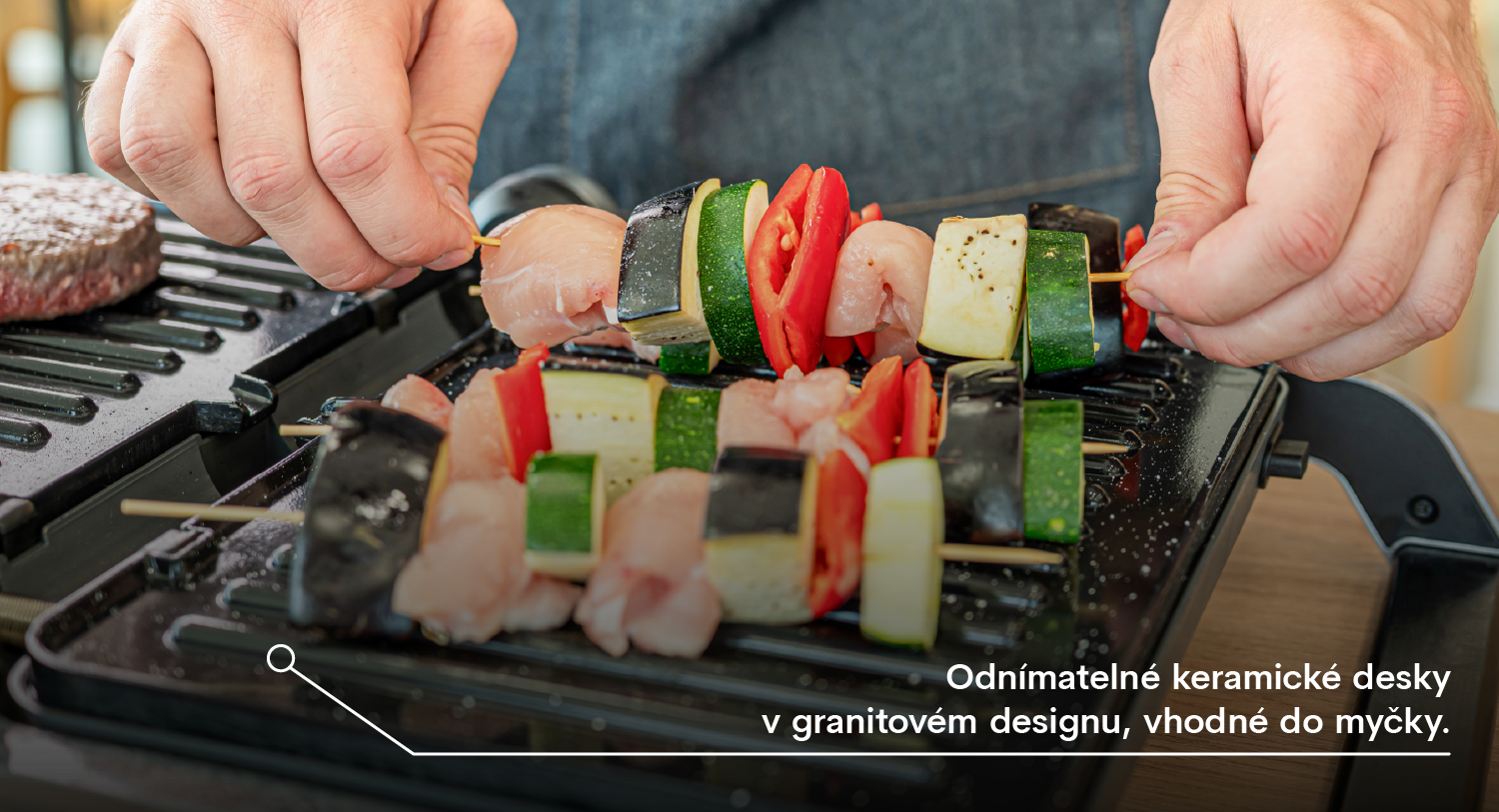 Grilovací desky s keramickým povrchem zajistí, že se jídlo nepřipéká a údržba je maximálně jednoduchá. Desky jsou odnímatelné a vhodné do myčky nádobí, takže po grilování nemusíte trávit čas složitým čištěním.