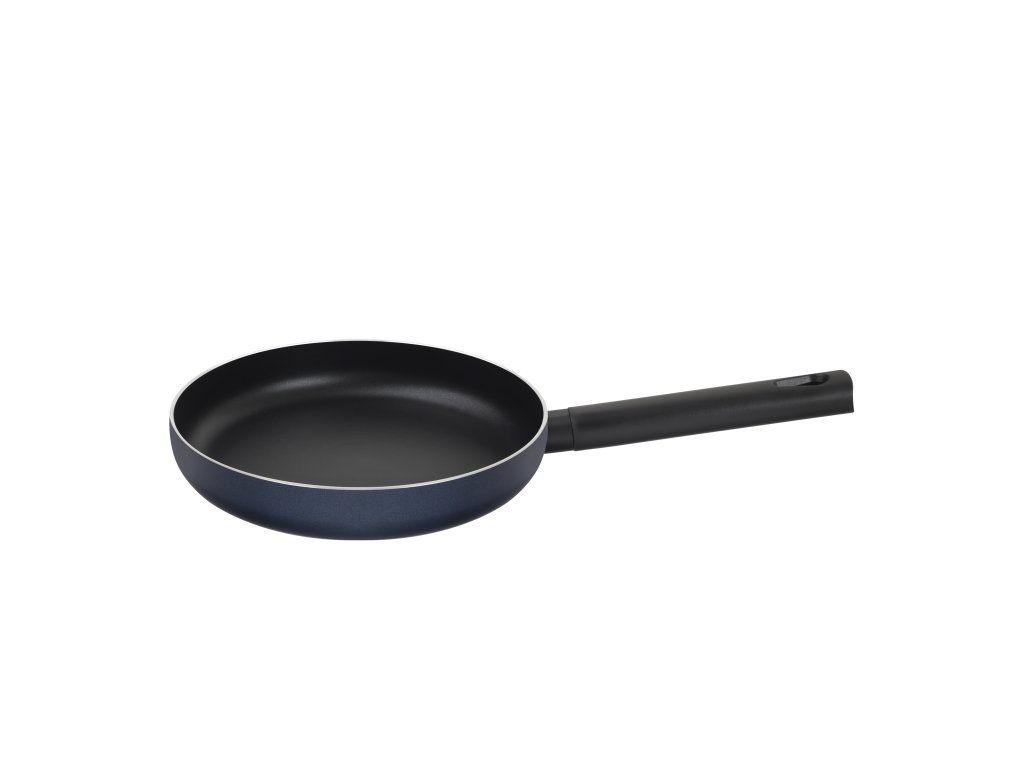 Stylová nepřilnavá pánev Remoska® Maria s průměrem 26 cm a modrým designem. Vhodná na všechny typy sporáků (plynové, elektrické, sklokeramické i indukční). Pánev ⌀ 26 cm je ideální pro smažení, opékání a přípravu středních porcí jídel pro dvě až tři osoby.