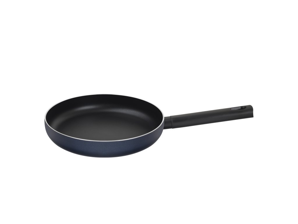 Stylová nepřilnavá pánev Remoska® Maria s průměrem 28 cm a modrým designem. Vhodná na všechny typy sporáků (plynové, elektrické, sklokeramické i indukční). Pánev ⌀ 28 cm je ideální pro smažení, opékání a přípravu větších porcí jídel pro tři osoby.