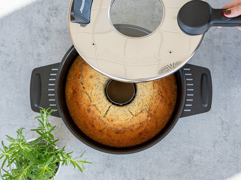 Se středovým kuželem Remoska® snadno proměníte svou elektrickou pečicí mísu v formu na bábovku. Stačí jej vložit do mísy a můžete péct nadýchané bábovky, dortové korpusy nebo jiné moučníky.