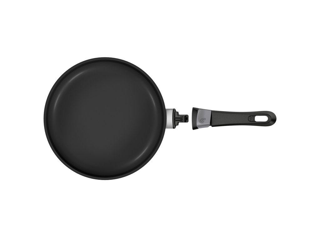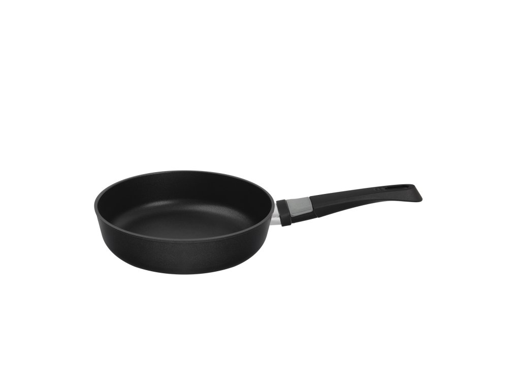 Kvalitní nepřilnavá pánev s odnímatelným držadlem a průměrem 24 cm. Vhodná na všechny typy sporáků (plynové, elektrické, sklokeramické desky i indukce) nebo pro zapékání v troubě. Pánev ⌀ 24 cm s vysokým okrajem je ideální na smažení, opékání a přípravu menších porcí jídel pro jednu až dvě osoby, například masových směsí, zeleniny, omáček nebo těstovin.