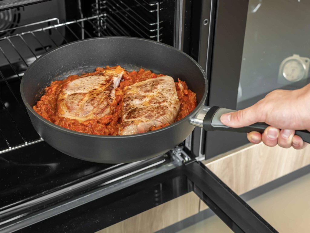 Pánev Remoska® Luna je vhodná i na zapékání v troubě. S jednou pánví tak hravě zvládnete vaření, restování, ale i zapékání v troubě až do 220 °C (bez držadla).