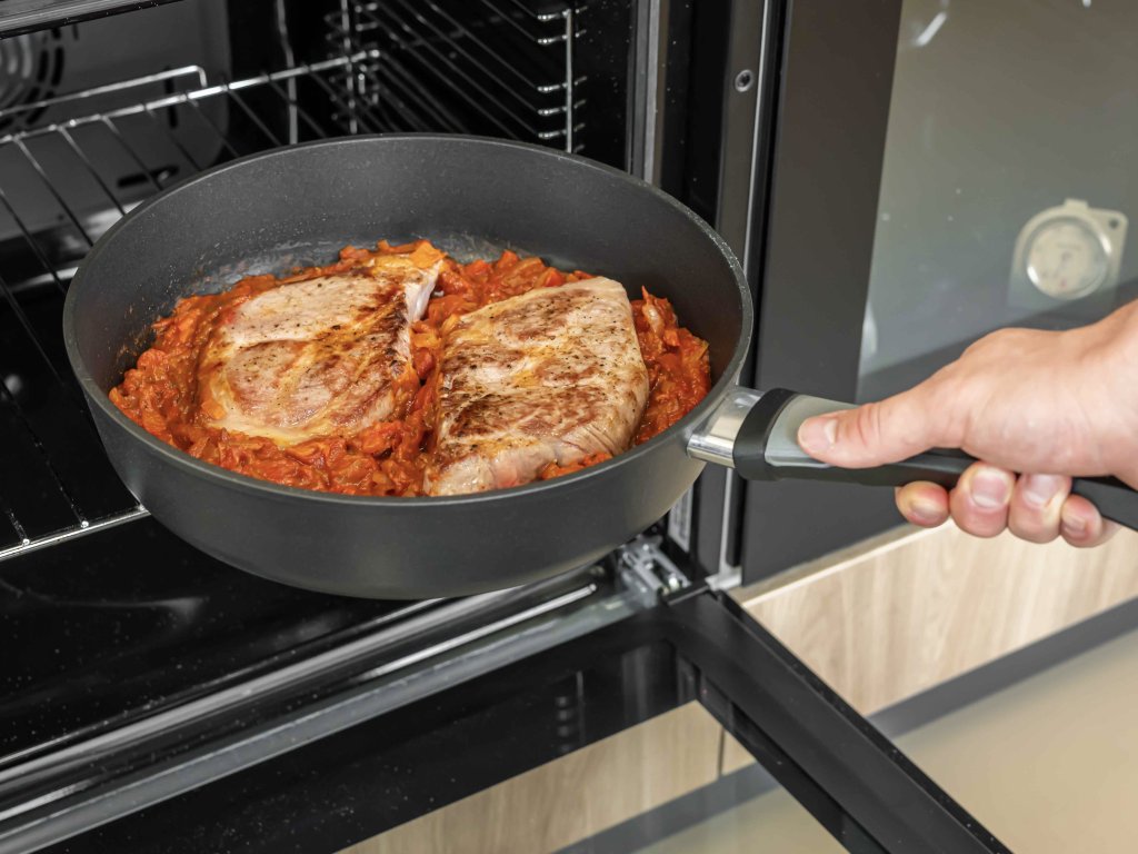 Pánev Remoska® Luna je vhodná i na zapékání v troubě. S jednou pánví tak hravě zvládnete vaření, restování, ale i zapékání v troubě až do 220 °C (bez držadla).