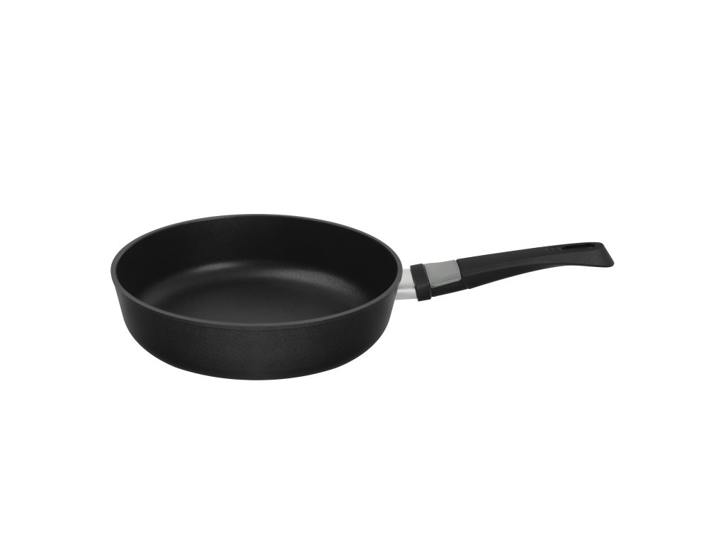 Kvalitní nepřilnavá pánev s odnímatelným držadlem a průměrem 28 cm. Vhodná na všechny typy sporáků (plynové, elektrické, sklokeramické desky i indukce) nebo pro zapékání v troubě. Pánev ⌀ 28 cm s vysokým okrajem je ideální na smažení, opékání a přípravu jídel pro dvě až tři osoby, například masových směsí, zeleniny, omáček nebo těstovin.