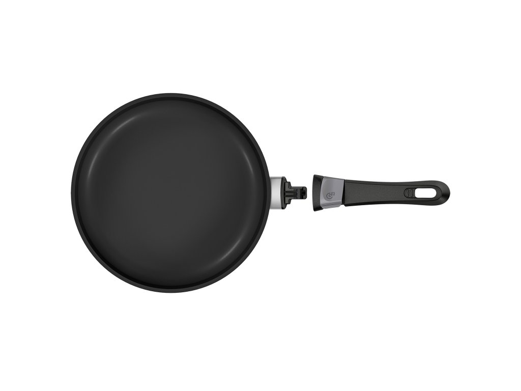 Použití je mimořádně jednoduché – stačí zmáčknout zámek a držadlo od těla pánve snadno odejmete či znovu připojíte. Ať už chcete dát pánev do trouby, lednice nebo ji úsporně uložit, zvládnete to jediným pohybem. Přesto se ale nemusíte bát, držadlo je v poloze zamčení natolik pevné, že nehrozí žádné nebezpečí uvolnění nebo pádu.