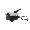 Víko s topným tělesem se skládá ze dvou částí. Spodní topná část je potažena nepřilnavým povrchem Teflon® Classic a zajišťuje dokonalé propečení vašeho jídla. Horní část je potažena nerezovým plechem a umožňuje tak odkládání pečícího víka na pracovní plochu topnou částí směrem vzhůru. Na rukojeti víka pak naleznete i ovládací spínač pečicí mísy. Víko nemá skleněné okénko.