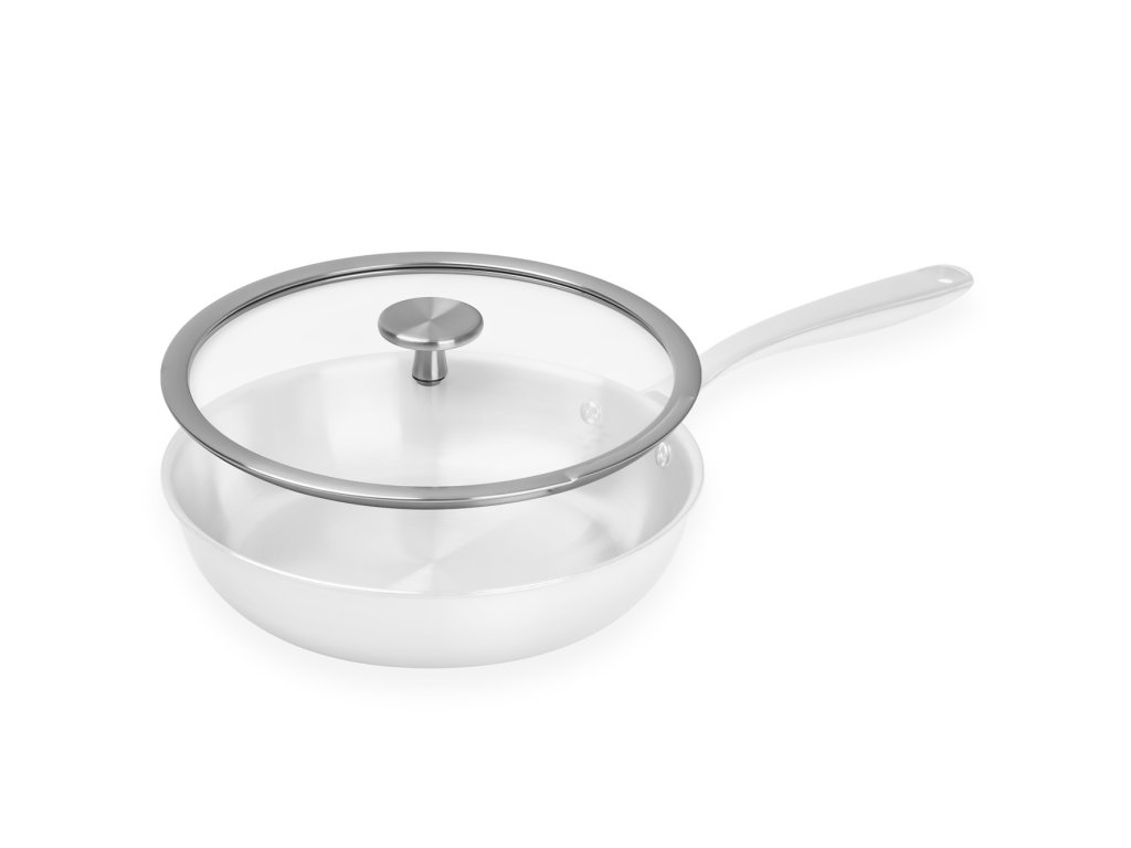 Elegantní nerezový lem zvyšuje odolnost a dodává poklici moderní vzhled, zatímco pohodlný nerezový knob zajišťuje komfortní a bezpečnou manipulaci.