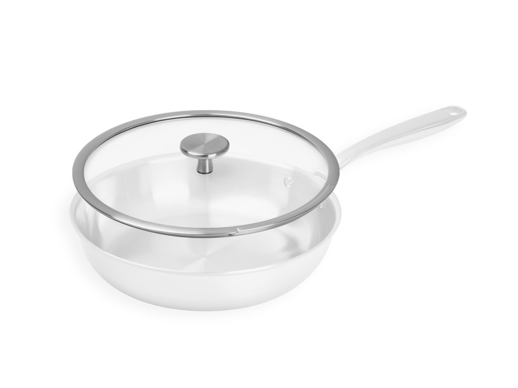 Elegantní nerezový lem zvyšuje odolnost a dodává poklici moderní vzhled, zatímco pohodlný nerezový knob zajišťuje komfortní a bezpečnou manipulaci.