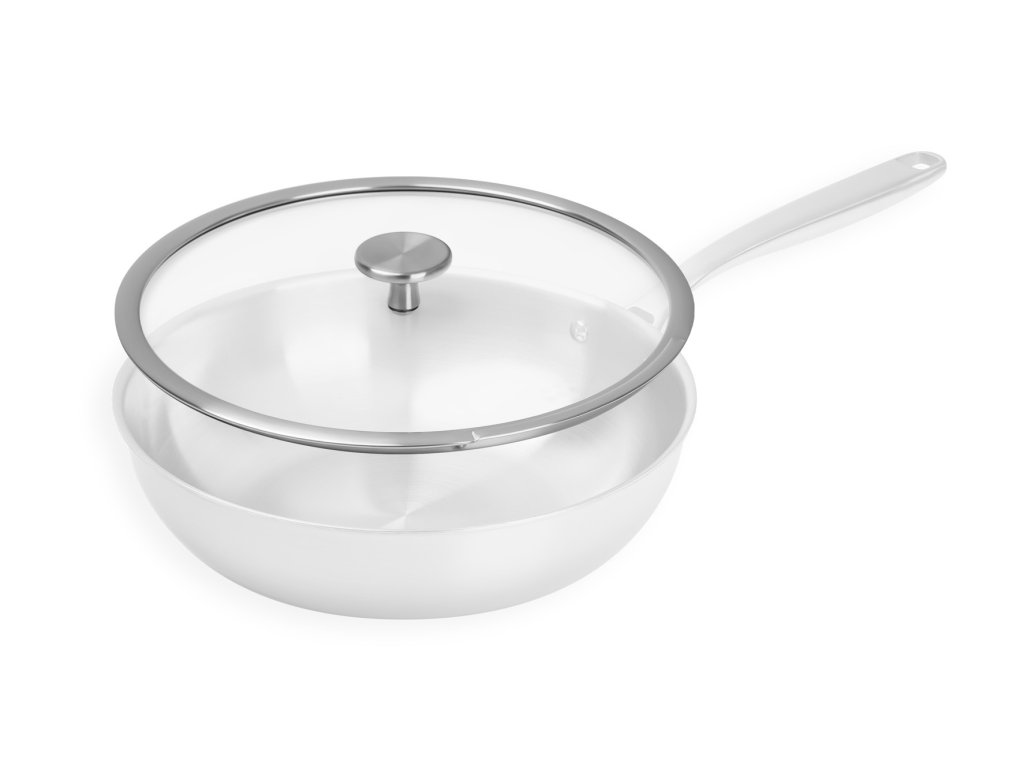 Elegantní nerezový lem zvyšuje odolnost a dodává poklici moderní vzhled, zatímco pohodlný nerezový knob zajišťuje komfortní a bezpečnou manipulaci.