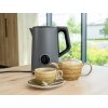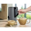 Vyjímatelné nerezové sítko proti vodnímu kameni snadno očistíte pouhým opláchnutím pod tekoucí vodou, takže se nemusíte trápit s usazeninami. Díky objemu 1,7 l připravíte dostatek vody pro celou rodinu nebo návštěvu. A když máte hotovo, napájecí kabel jednoduše schováte do úložného prostoru na spodní straně rychlovarné konvice Remoska® Maria, vaše kuchyň tak zůstane přehledná a upravená.